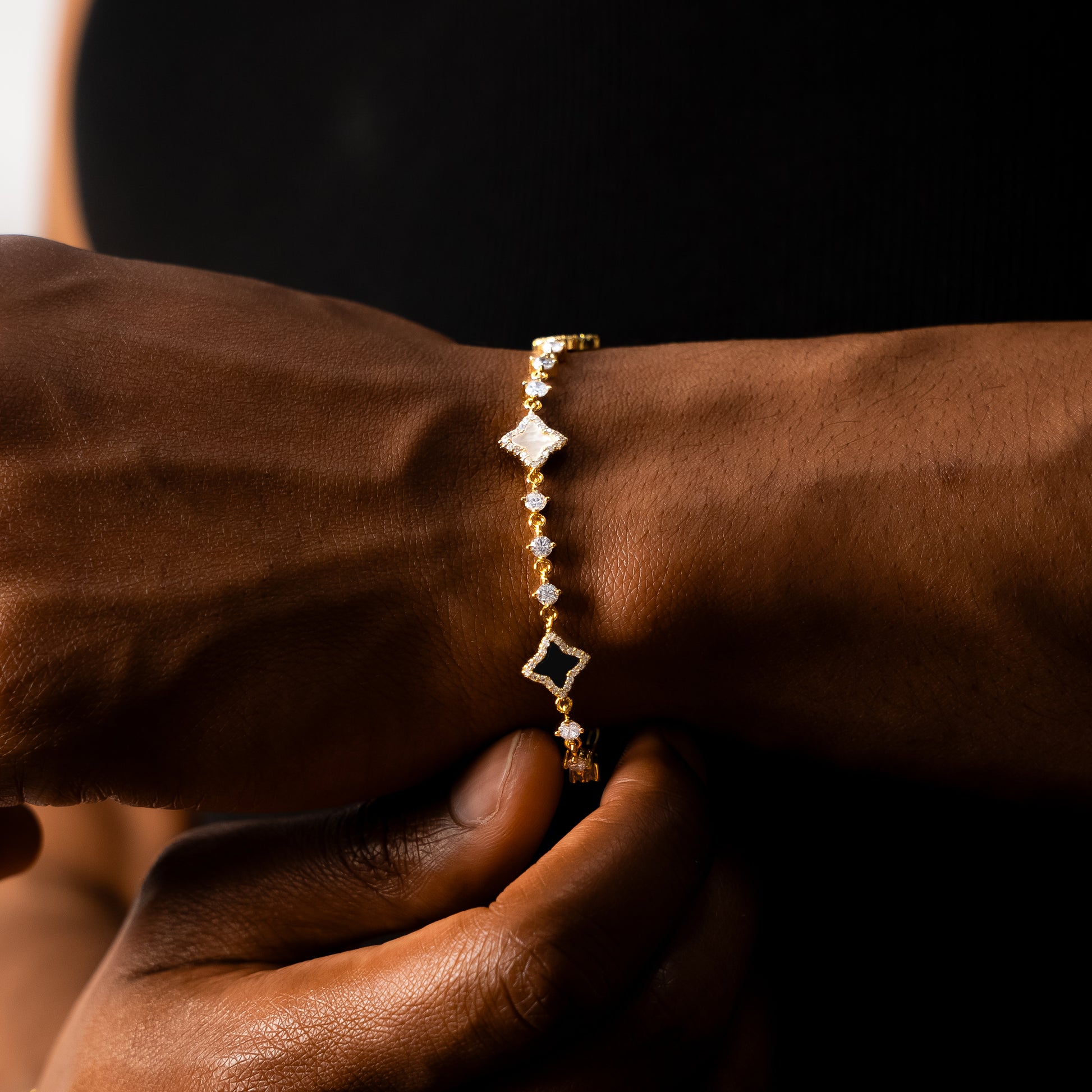 Discover our Flower Tennis Bracelet, an exquisite piece that combines the timeless elegance of the tennis bracelet and the delicacy of flowers. Each of the flowers, adorned with an imitation mother-of-pearl stone and measuring 8 mm thick, adds a touch of charm and sophistication to this 3 mm bracelet.