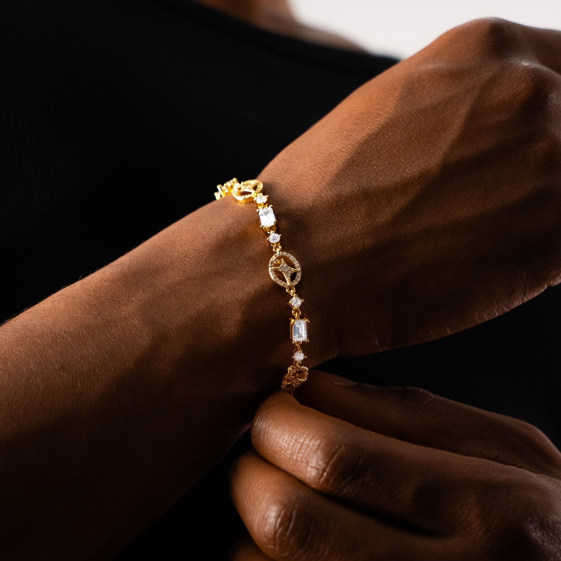 Discover our Iced Signature Bracelet, a sophisticated piece adorned with our famous circled logo, accompanied by 4mm baguette-shaped stones. This jewel will bring a touch of shine to your style.