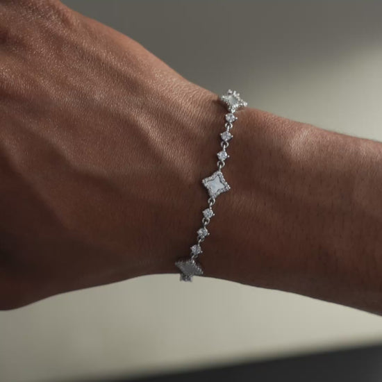 Discover our Flower Tennis Bracelet, an exquisite piece that combines the timeless elegance of a tennis bracelet with the delicacy of flowers. Each flower, adorned with a mother-of-pearl stone and measuring 8 mm thick, adds a touch of charm and sophistication to this 3 mm bracelet.