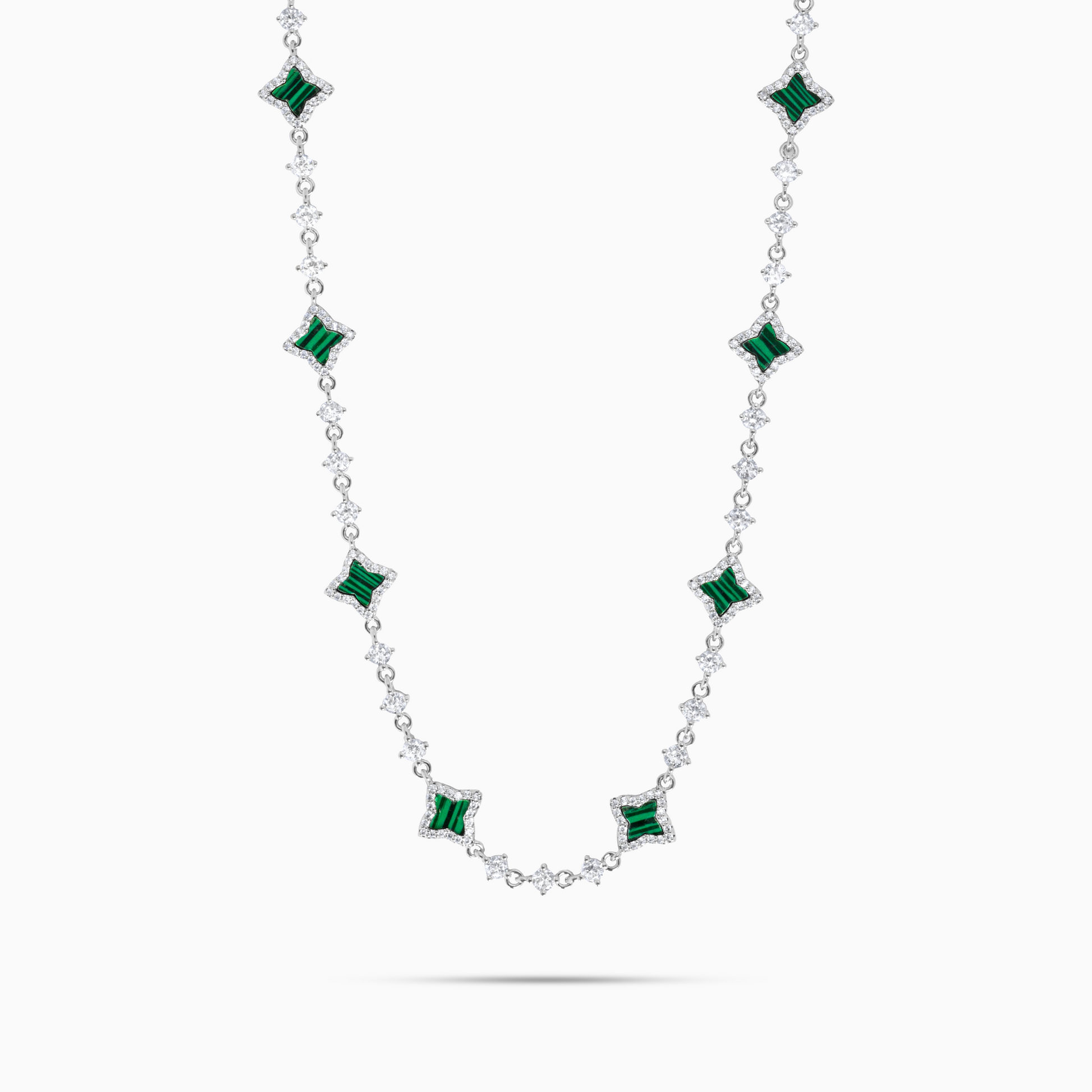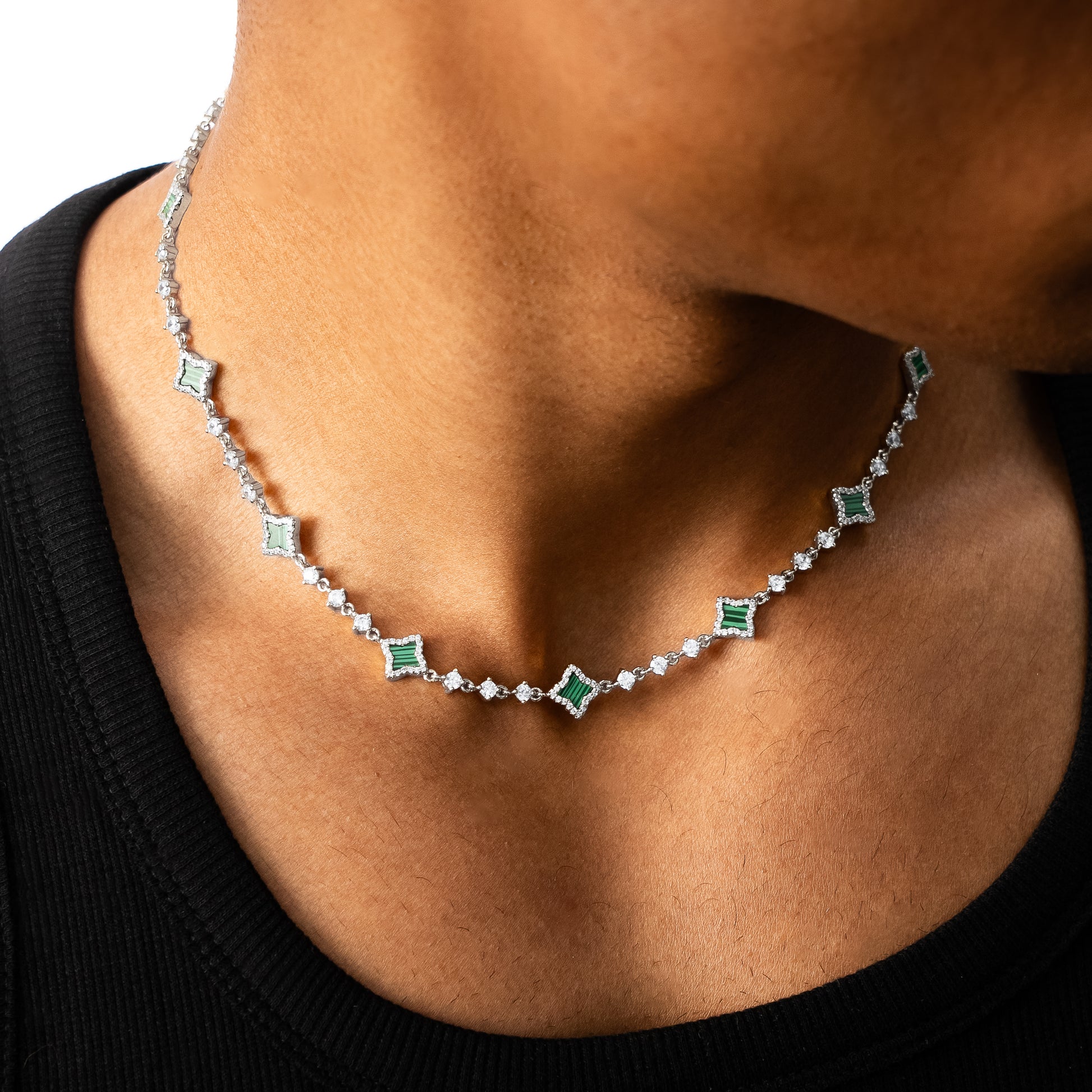 Discover our Flower Tennis Chain, an exquisite piece that combines the timeless elegance of the tennis bracelet with the delicacy of flowers. Each of the flowers, adorned with an imitation malachite stone and measuring 8 mm thick, adds a touch of charm and sophistication to this 3 mm bracelet.