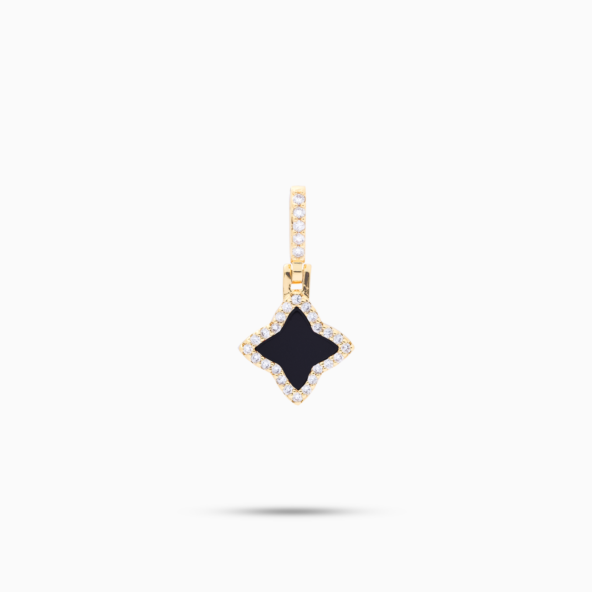 Here is our Flower pendant, combining delicacy and timeless refinement. At the heart of this jewel, a flower encrusted with sparkling stones highlights a central stone in imitation onyx, offering a thickness of 8 mm for a subtle and luminous charm.