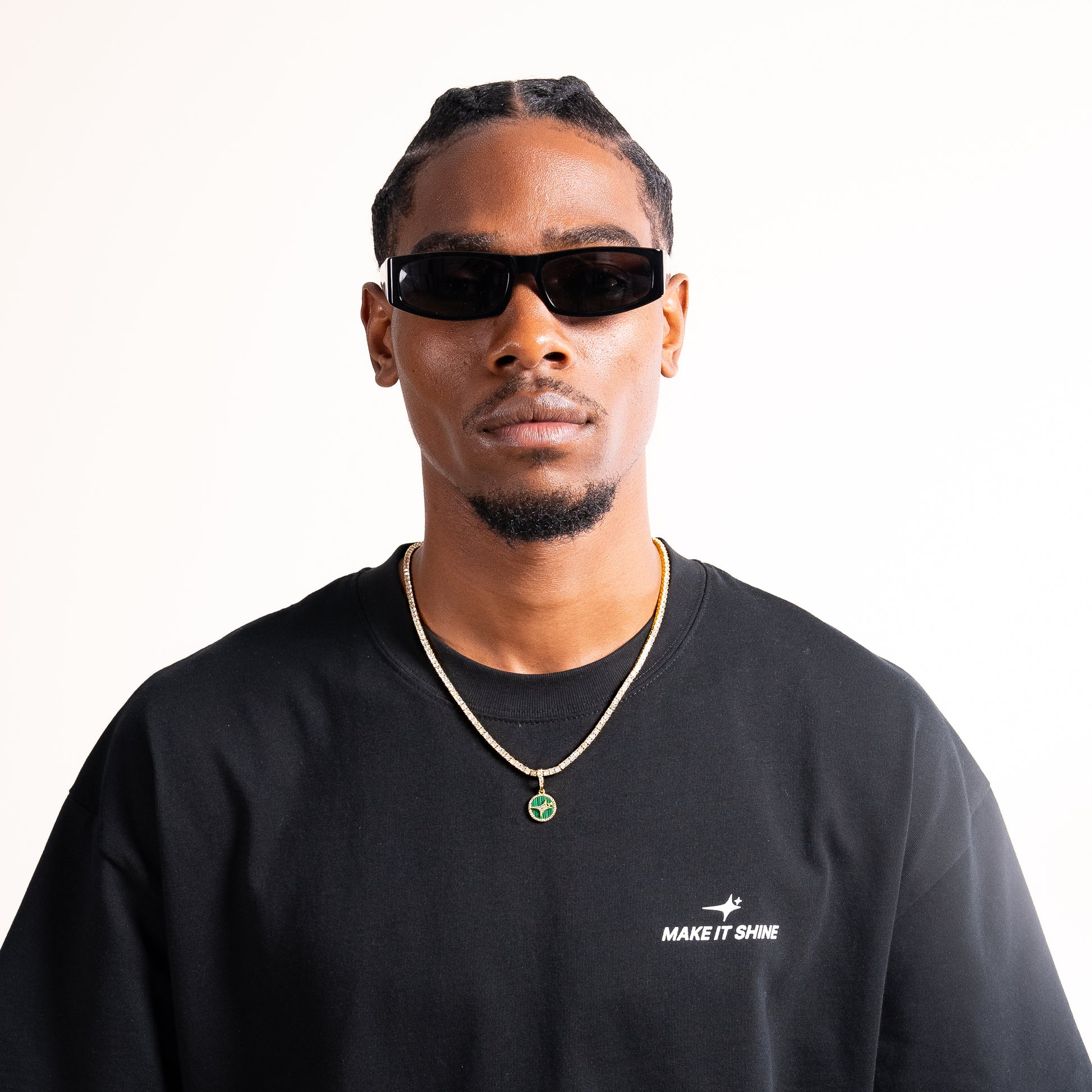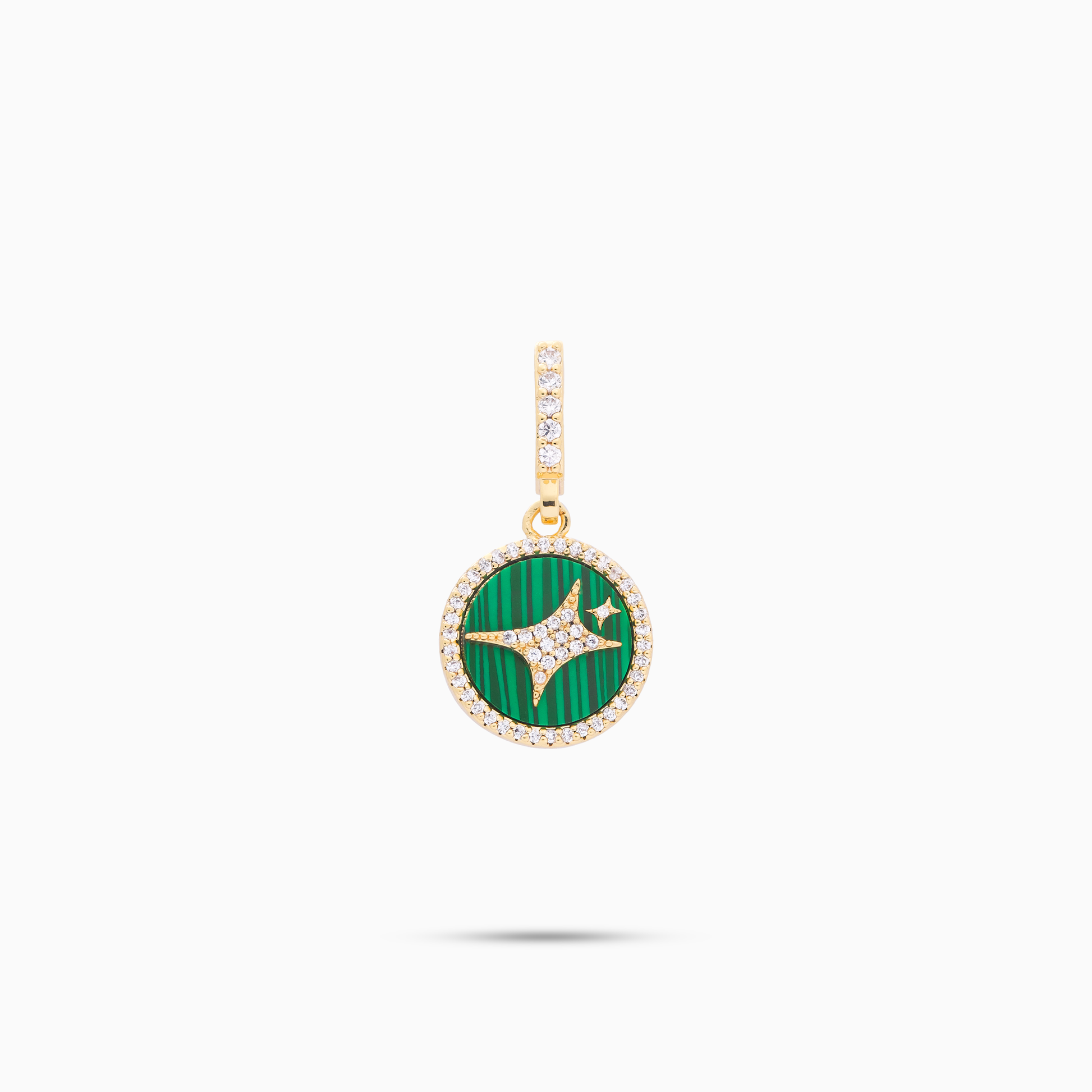 Discover our Signature Medallion, a radiant piece of jewelry that enhances our iconic star logo. With a diameter of 1.5 cm, this refined pendant is adorned with malachite imitation stone and sparkling cubic zirconia, highlighting our central star. Perfect for adding a touch of sophistication and brilliance to your outfits.
