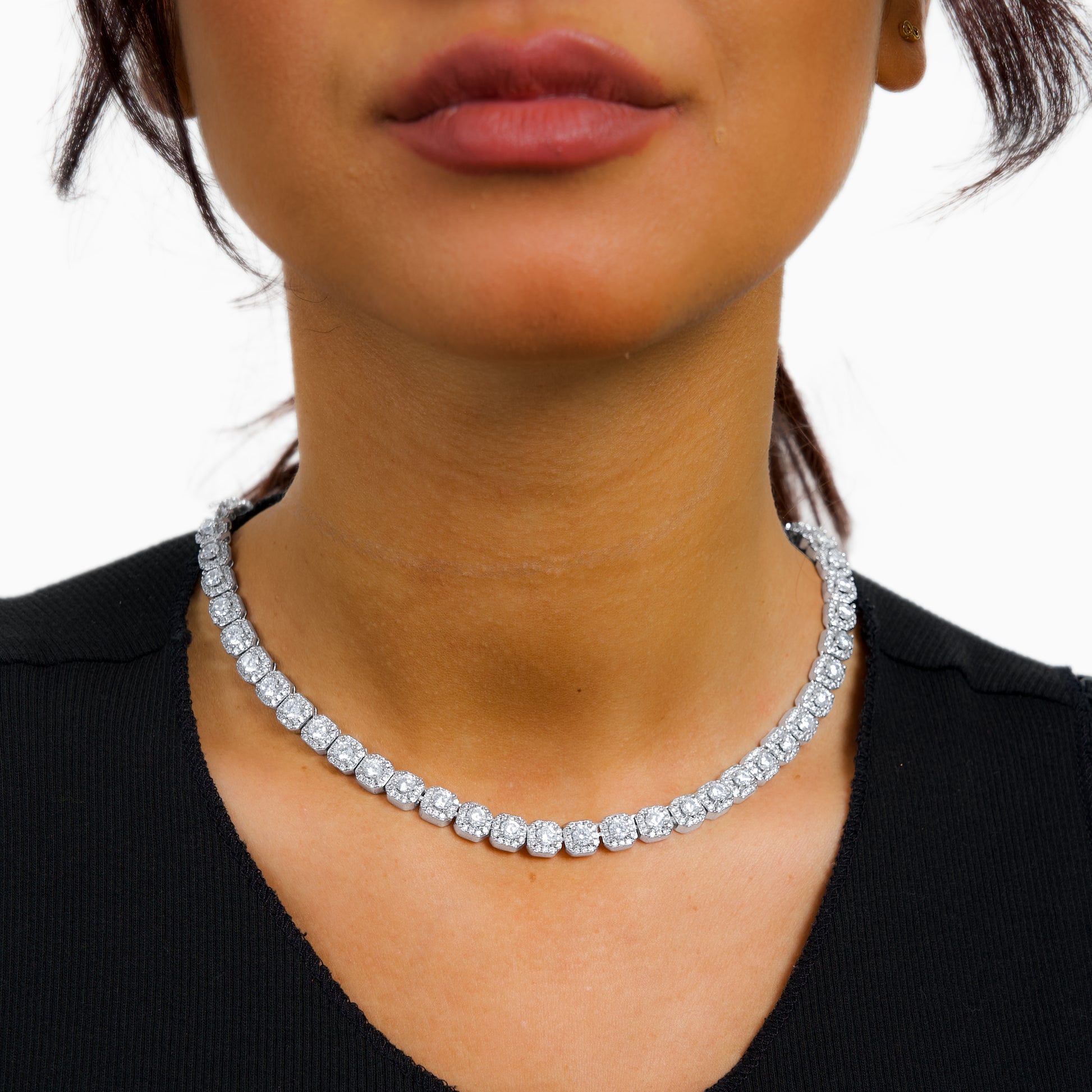Flooded with several layers of set stones, the 6MM Clustered tennis is a new form of Tennis. Each layer draws attention to the larger stones arranged in the center, allowing it to catch light from all angles for an out-of-this-world sparkle.