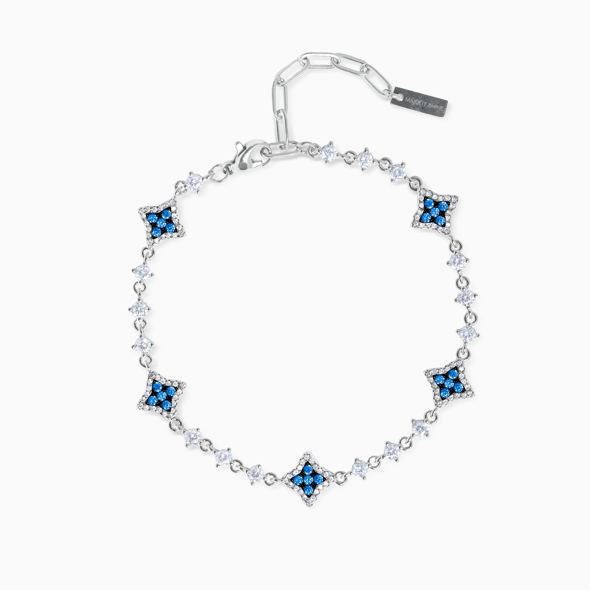Découvrez notre Bracelet Flower Tennis, une pièce exquise qui marie l'élégance intemporelle du bracelet tennis et la délicatesse des fleurs. Chacune des fleurs, ornées de pierres scintillantes bleues et d'une épaisseur de 8 mm, ajoute une touche de charme et de sophistication à ce bracelet de 3 mm.