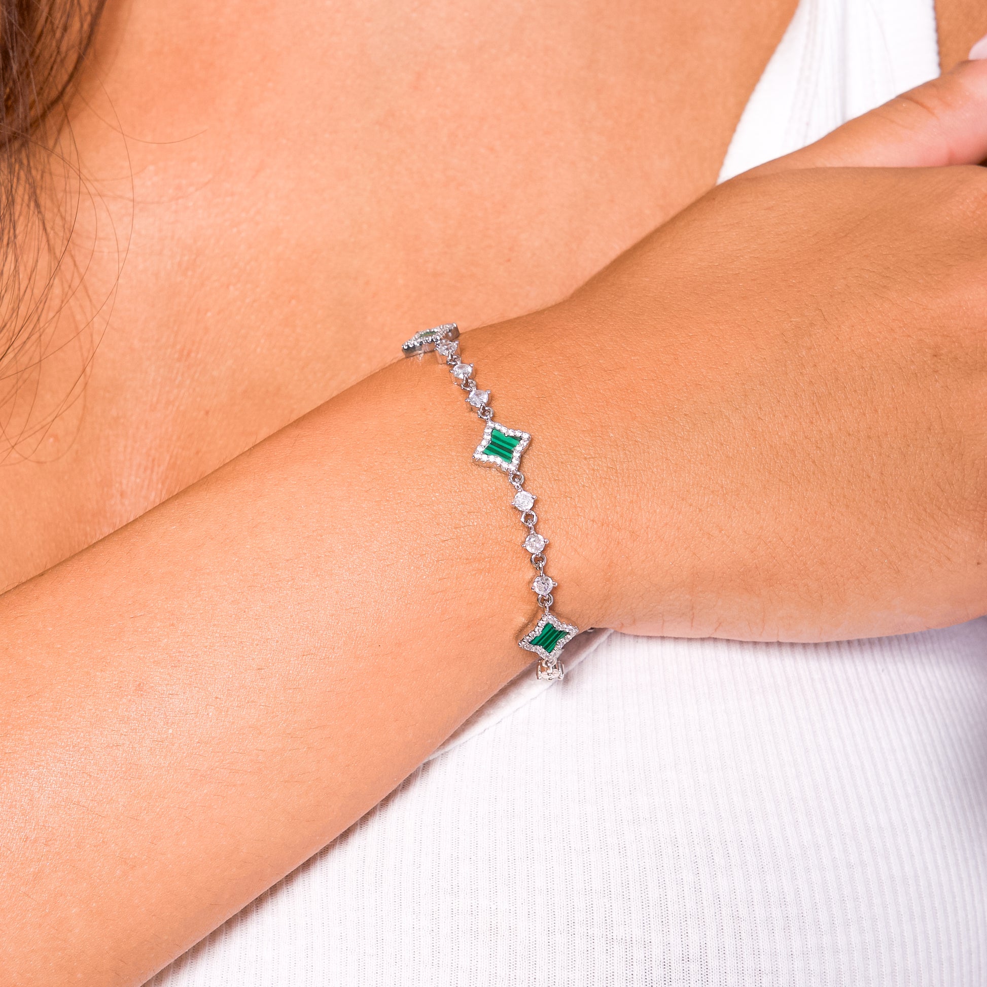 Découvrez notre Bracelet Flower Tennis, une pièce exquise qui marie l'élégance intemporelle du bracelet tennis et la délicatesse des fleurs. Chacune des fleurs, ornée d'une pierre imitation malachite et d'une épaisseur de 8 mm, ajoute une touche de charme et de sophistication à ce bracelet de 3 mm.