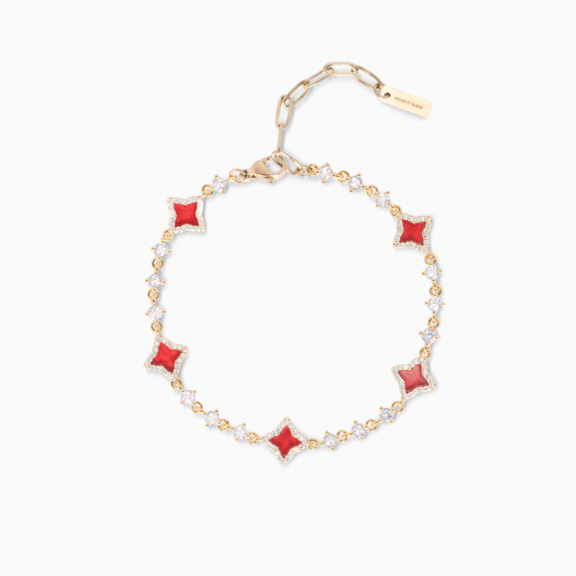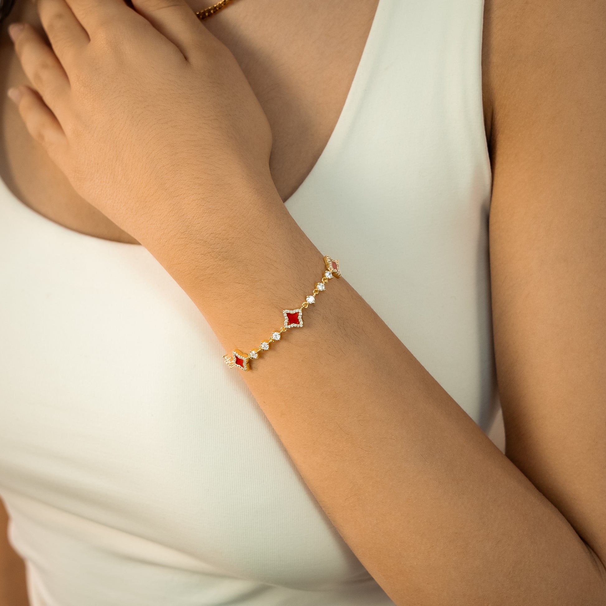 Découvrez notre Bracelet Flower Tennis, une pièce exquise qui marie l'élégance intemporelle du bracelet tennis et la délicatesse des fleurs. Chacune des fleurs, ornée d'une pierre imitation cornaline et d'une épaisseur de 8 mm, ajoute une touche de charme et de sophistication à ce bracelet de 3 mm.