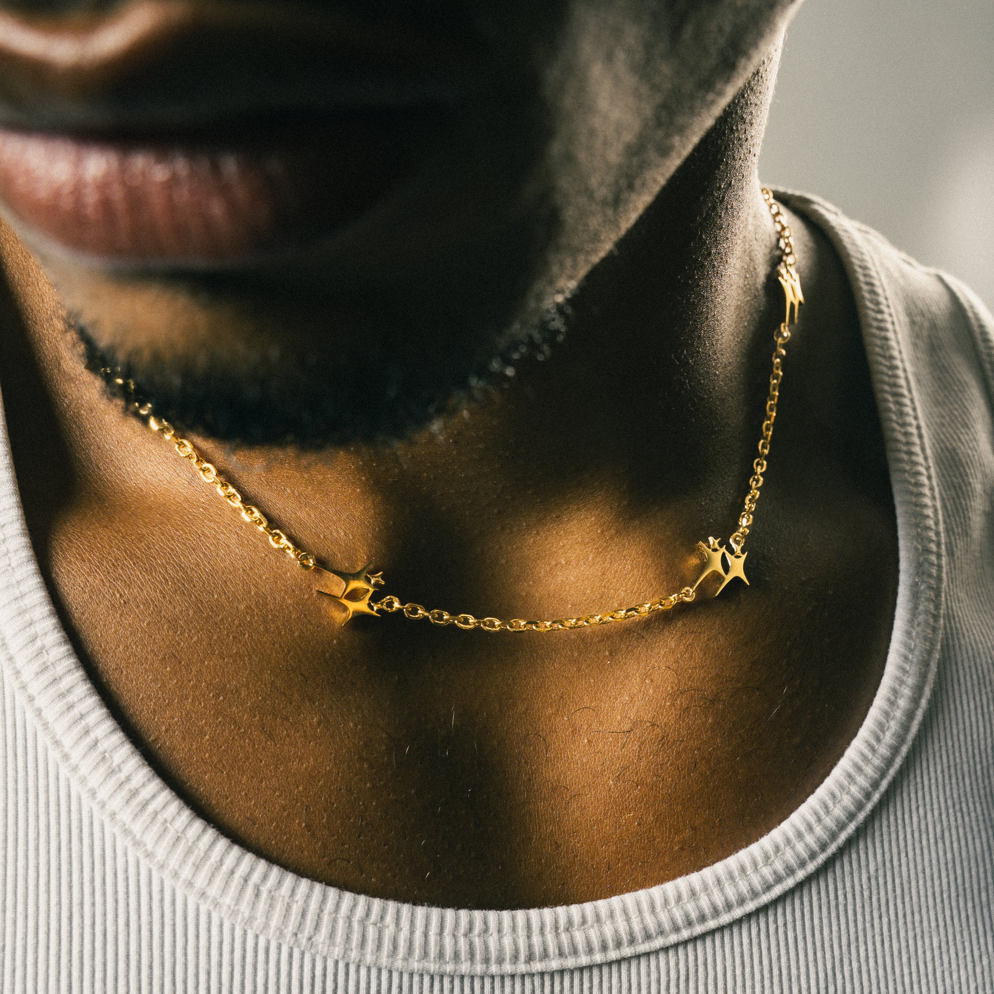 Découvrez notre chaîne Double Stars, sublimée par le double logo Make it Shine, symbole iconique de la Maison. Son fini doré et son design épuré en font une pièce intemporelle, pensée pour accompagner le quotidien sans compromis.