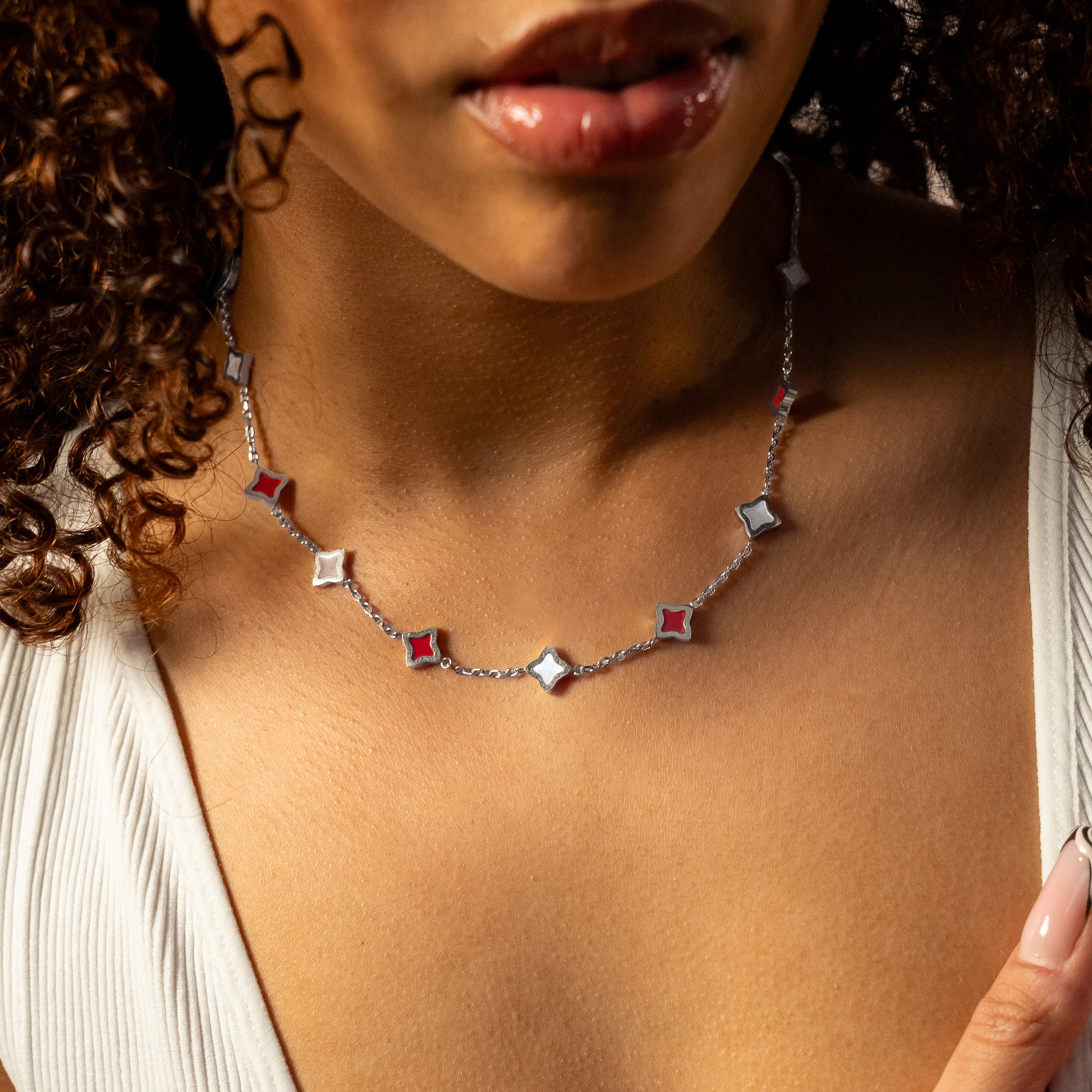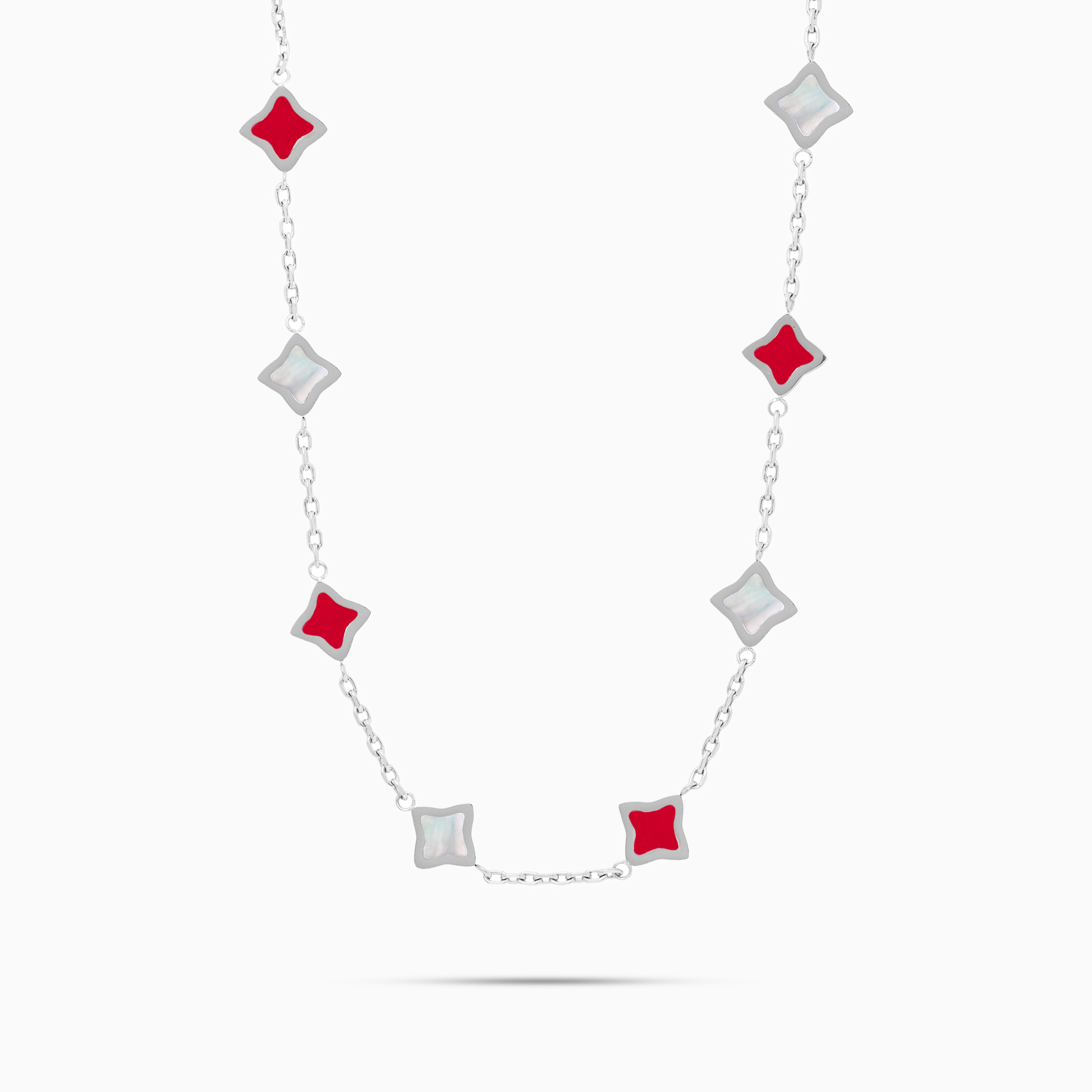 Découvrez notre Chaîne Flower, une pièce exquise qui marie l'élégance intemporelle de la chaîne câble et la délicatesse des fleurs. Chacune des fleurs, ornée d'une pierre imitation nacre et cornaline et d'une épaisseur de 8 mm, ajoute une touche de charme et de sophistication à cette chaîne de 2 mm.