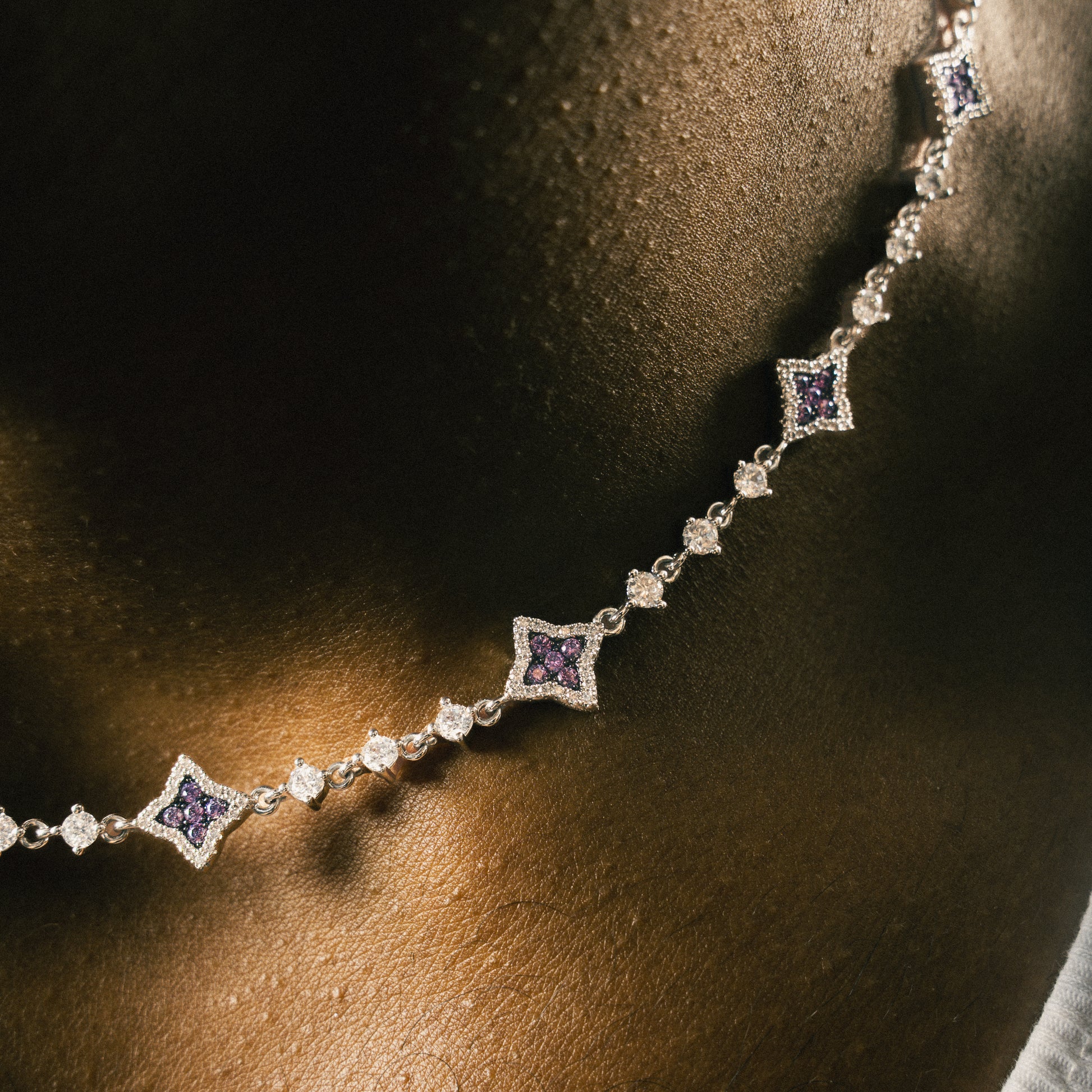 Découvrez notre Chaîne Flower Tennis, une pièce exquise qui marie l'élégance intemporelle de la chaîne tennis et la délicatesse des fleurs. Chacune des fleurs, ornées de pierres scintillantes violettes et d'une épaisseur de 8 mm, ajoute une touche de charme et de sophistication à cette chaîne de 3 mm.