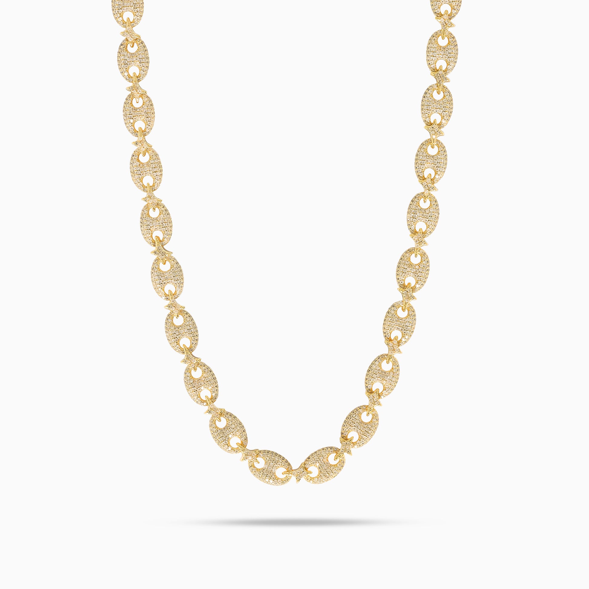Découvrez notre Chaîne Iced Coffee Beans, inspirée du maillon grain de café. Chaque maillon est entièrement pavé d’oxydes de zirconium pour un éclat intense, et chacun est relié par notre logo Make It Shine, apportant une identité forte et distinctive à la pièce.
