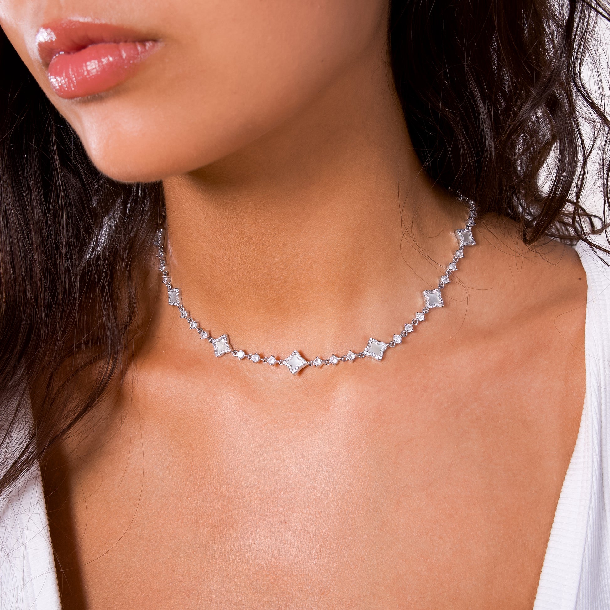 Découvrez notre Chaîne Flower Tennis, une pièce exquise qui marie l'élégance intemporelle de la chaîne tennis et la délicatesse des fleurs. Chacune des fleurs, ornée d'une pierre imitation nacre et d'une épaisseur de 8 mm, ajoute une touche de charme et de sophistication à cette chaîne de 3 mm.