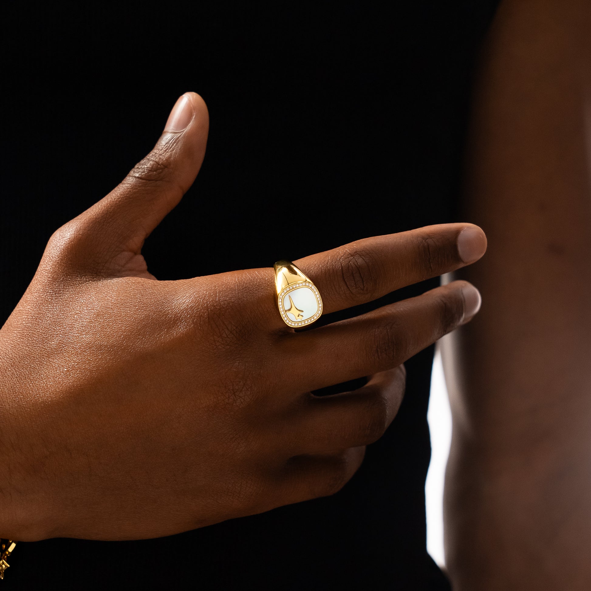 Découvrez notre Raw Ring, une chevalière au design affirmé et épuré, mise en valeur par un large plateau carré de 15 mm. Son centre, orné d’une pierre imitation nacre, contraste avec finesse avec le logo Make it Shine gravé en relief. Le tout est délicatement encerclé d’oxydes de zirconium blancs, apportant une touche d’éclat discrète mais sophistiquée.