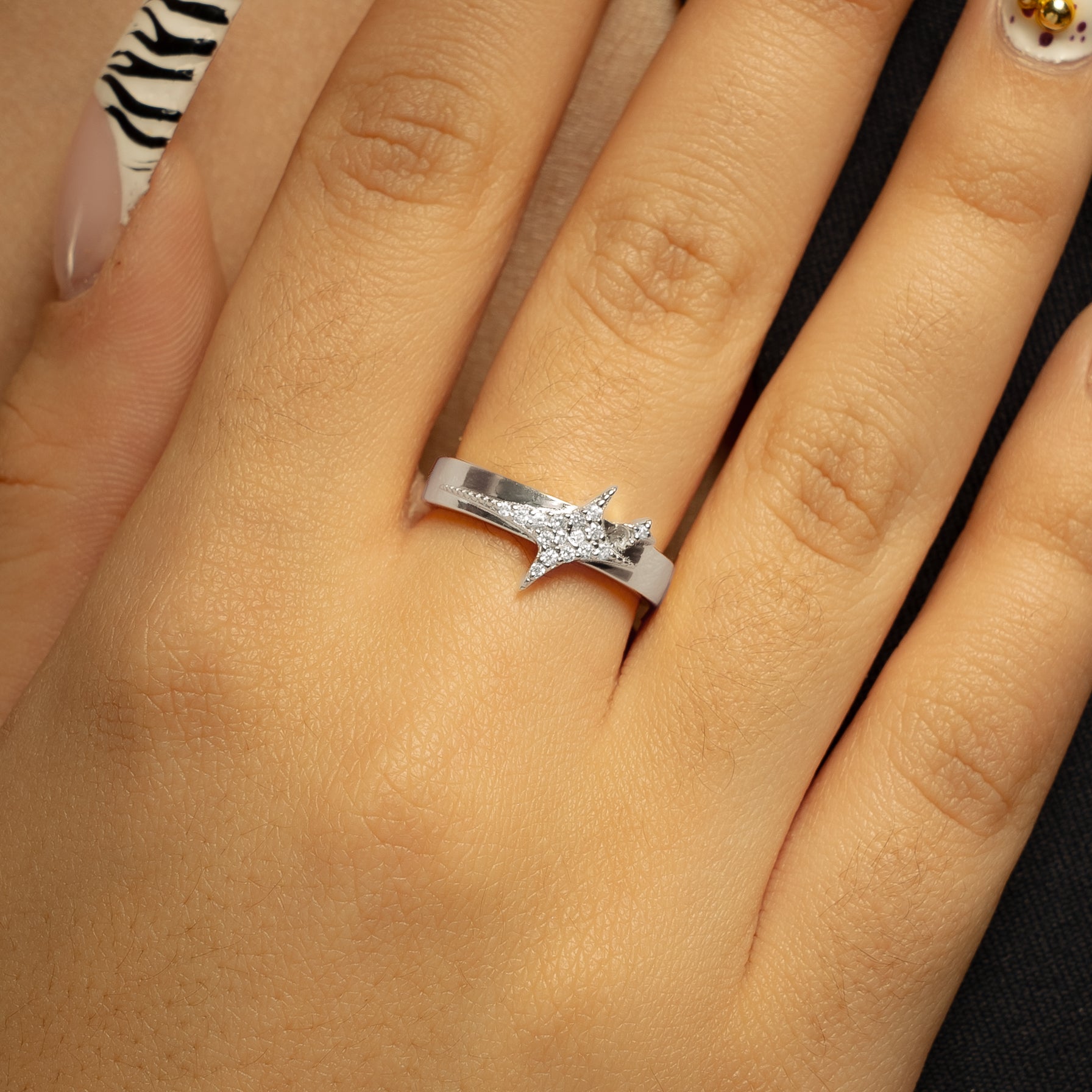 Cette bague Iced Signature ring rend hommage au logo emblématique de la Maison. Son anneau de 4 mm arbore une étoile de 11 mm ornée d'oxydes de zirconium, ajoutant une touche d'élégance à votre style.