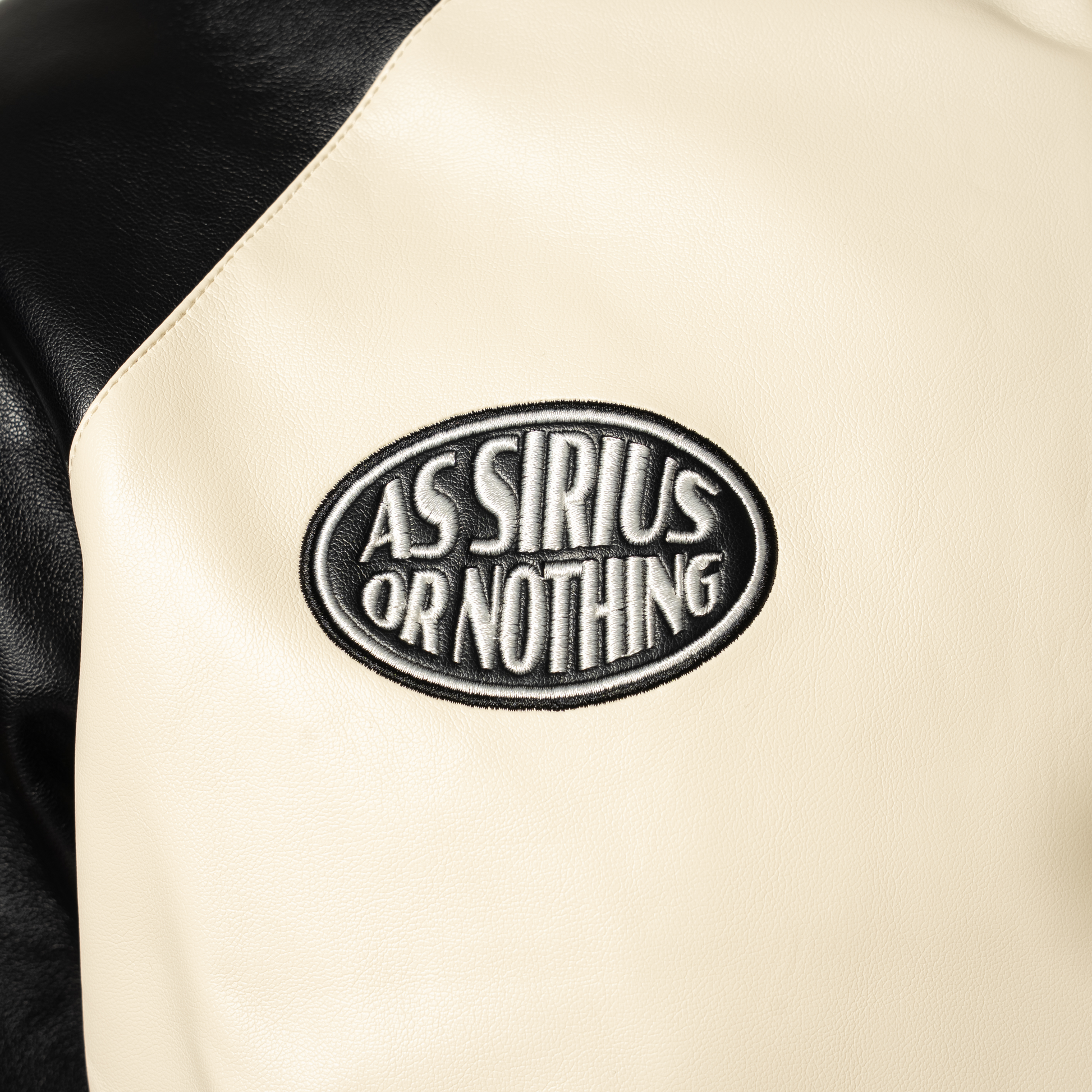Découvrez notre Leather jacket Double Stars, sa coupe moderne est soulignée par un contraste graphique fort et des logos iconiques Make It Shine.