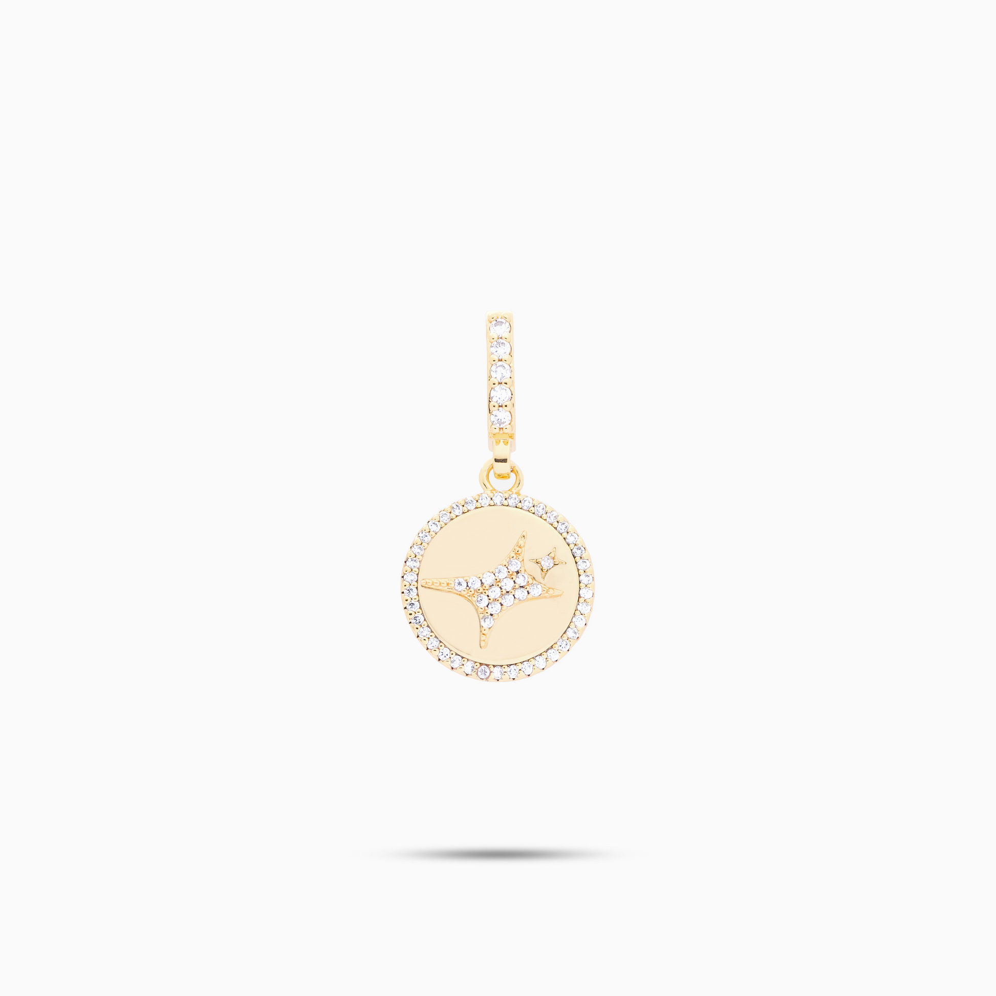 Découvrez notre médaillon Signature, un bijou éclatant qui sublime notre célèbre logo étoilé. D'un diamètre de 1,5 cm, ce pendentif raffiné est orné d'oxydes de zirconium étincelants, mettant en lumière notre étoile au centre. Parfait pour ajouter une touche de sophistication et de brillance à vos tenues.