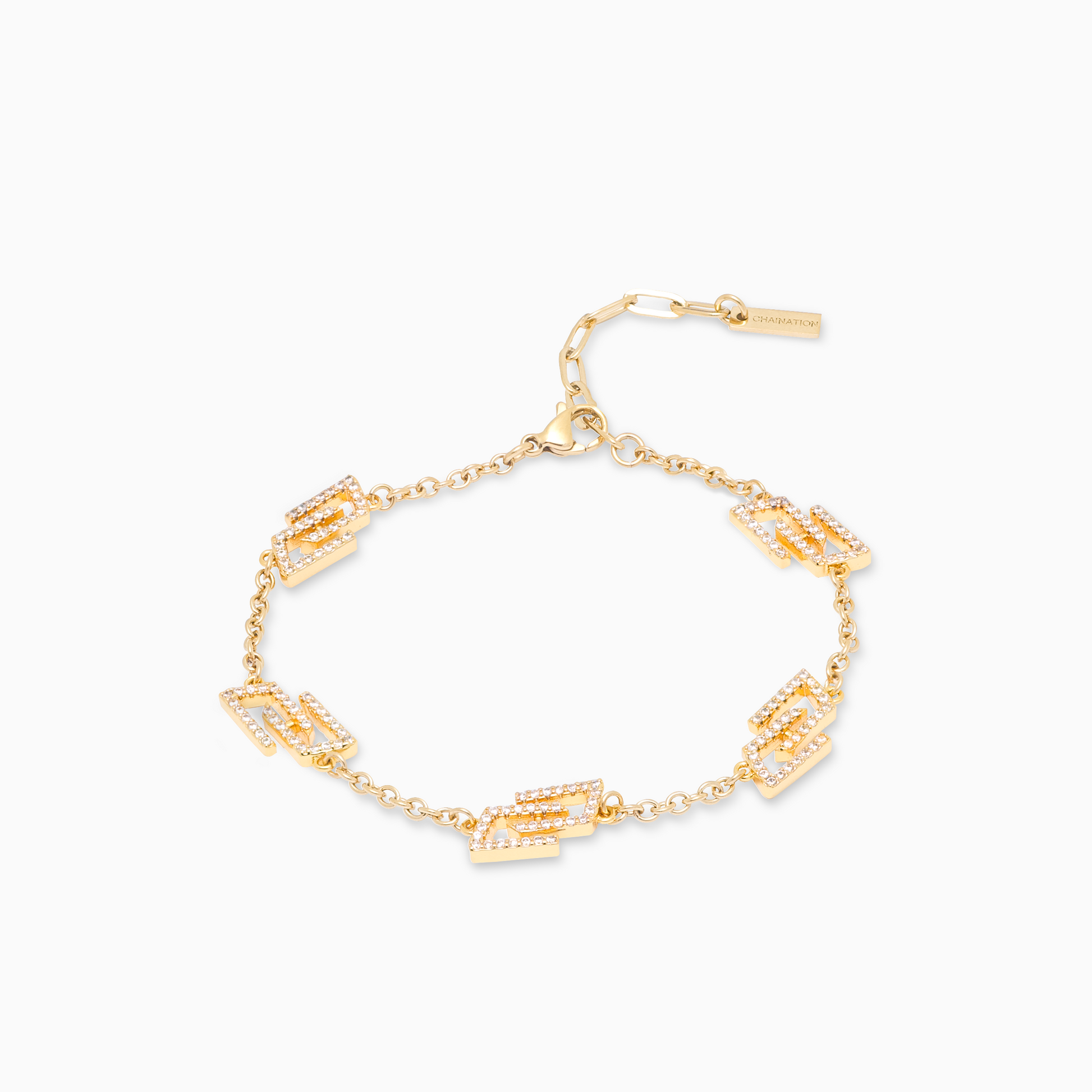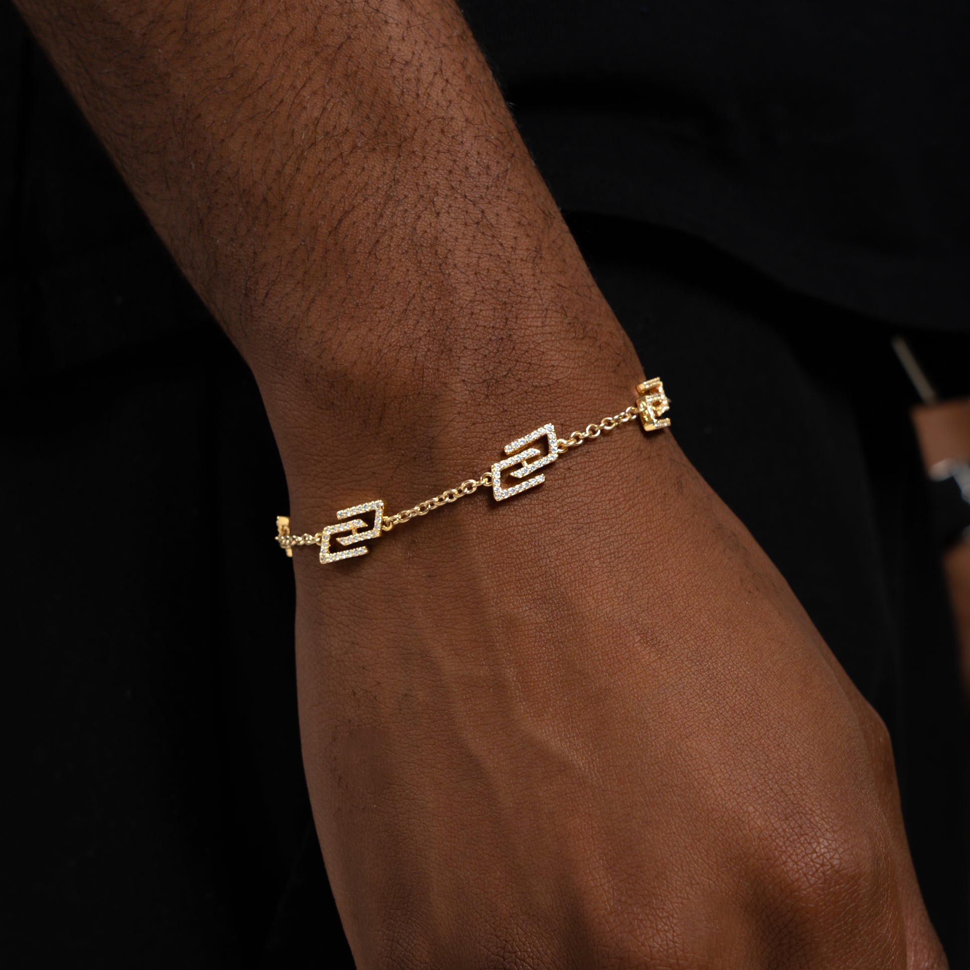 Voici notre Bracelet Monogramme, une pièce raffinée et remarquable. Chacun des cinq monogrammes de notre marque, intégrés dans une chaîne Câble de 3 mm, est délicatement habillé de pierres étincelantes. Conçu avec précision, ce bracelet capture l'essence de notre marque avec sophistication et style.