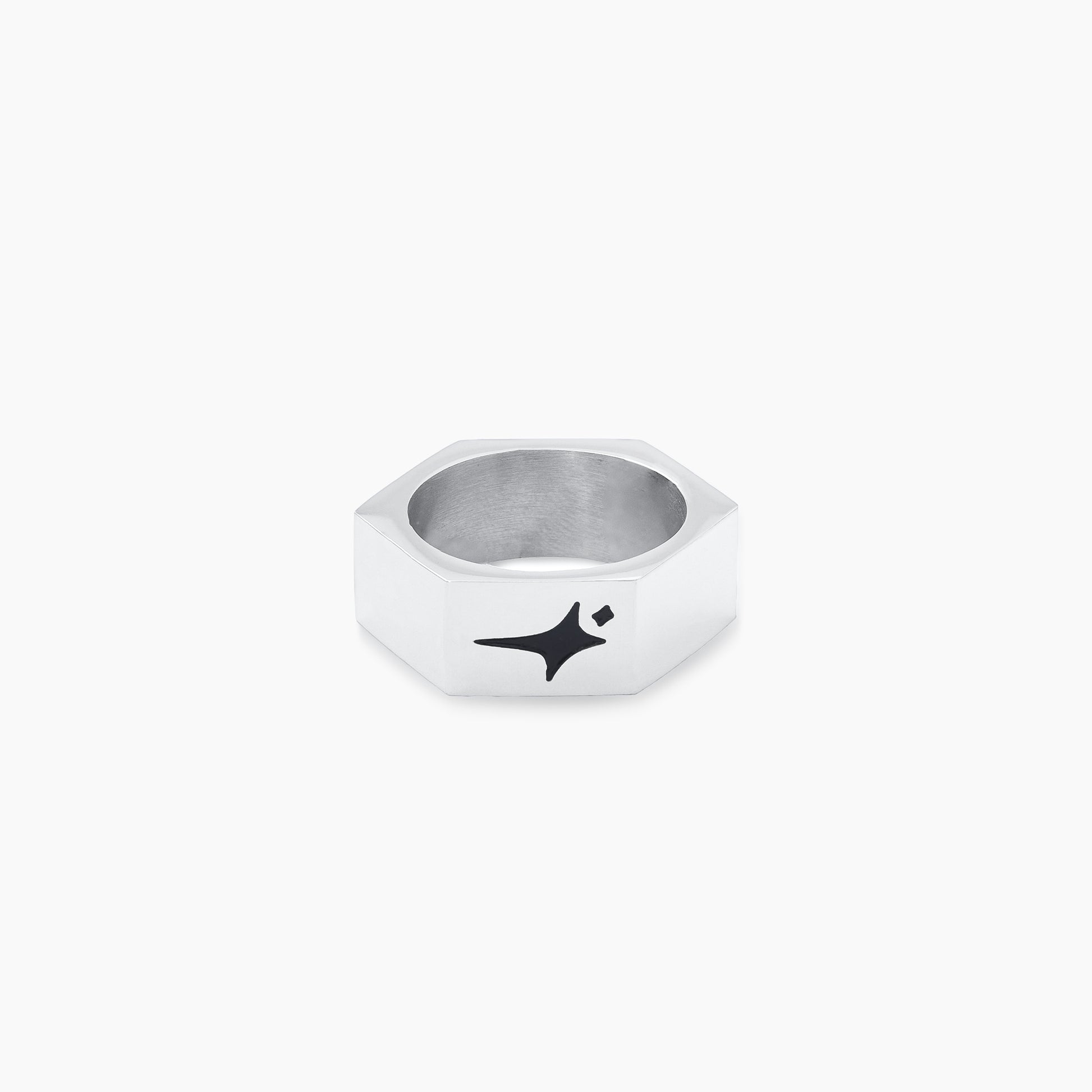 Voici notre Nut ring, une pièce audacieuse en forme d'écrou de 8 mm, méticuleusement détaillée avec notre emblématique logo.