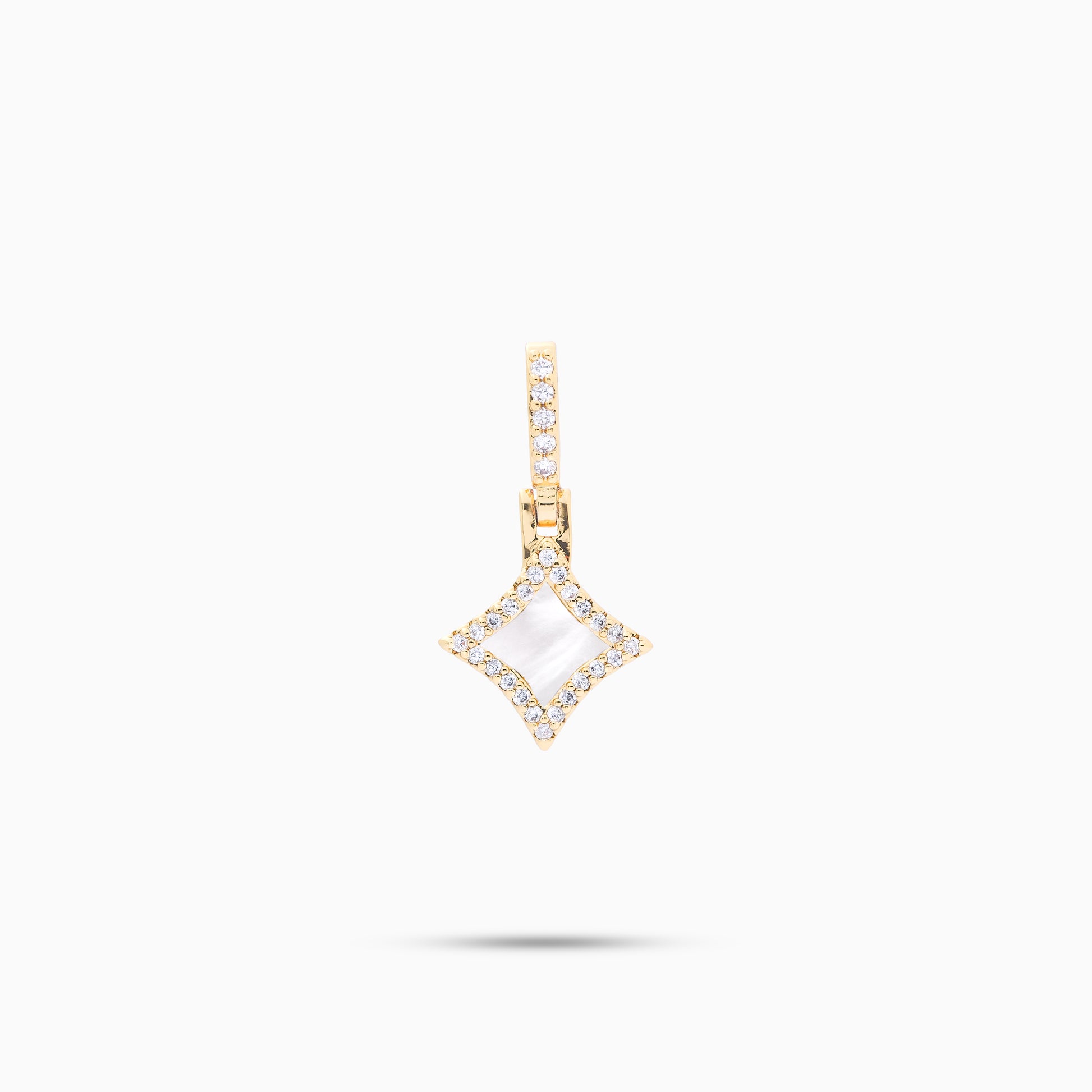 Voici notre pendentif Star, alliant élégance et éclat. Au cœur de ce bijou, une étoile sertie de pierres scintillantes met en valeur une pierre centrale en imitation nacre, le tout offrant une épaisseur de 8 mm pour un charme subtil et lumineux.