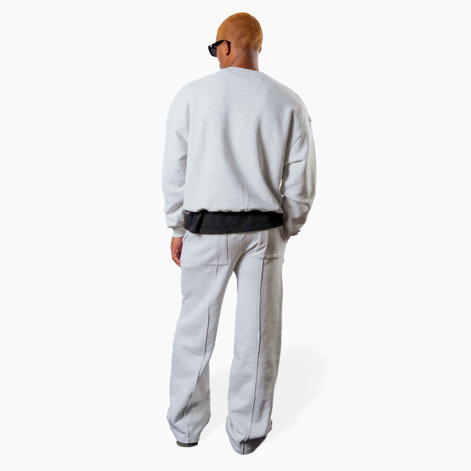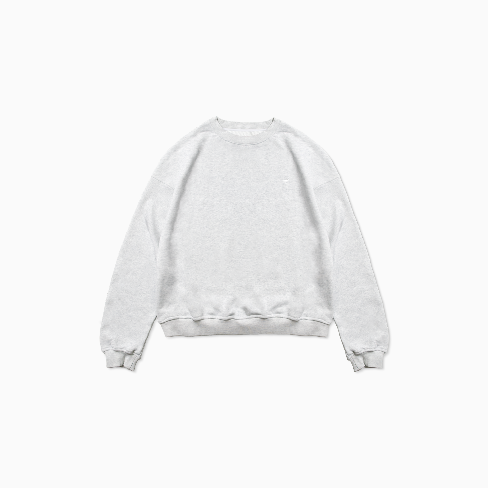 Sweater gris en jersey à manches longues avec une coupe oversize, fabriqué à partir d'un coton épais de qualité supérieure. Col ras de cou côtelé.