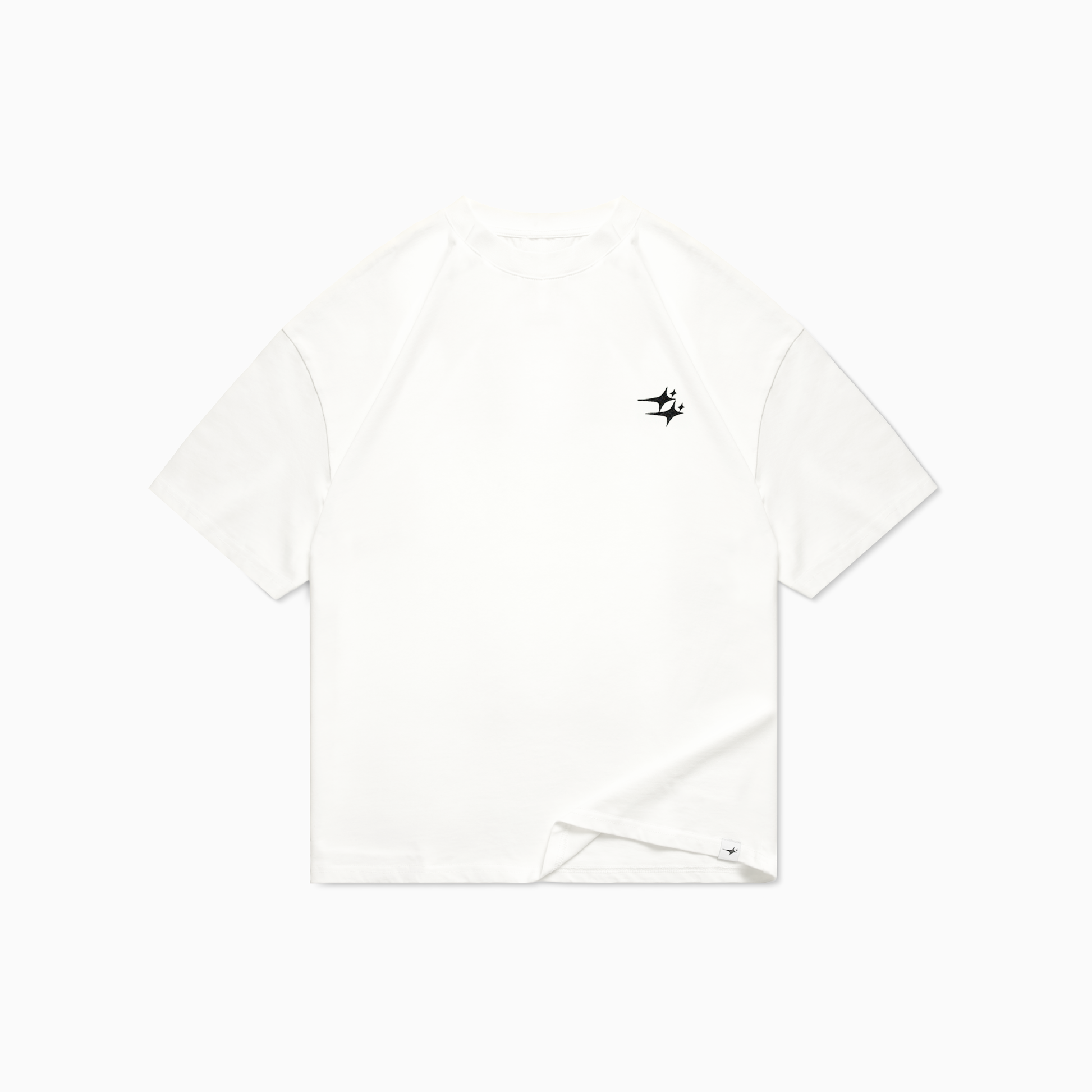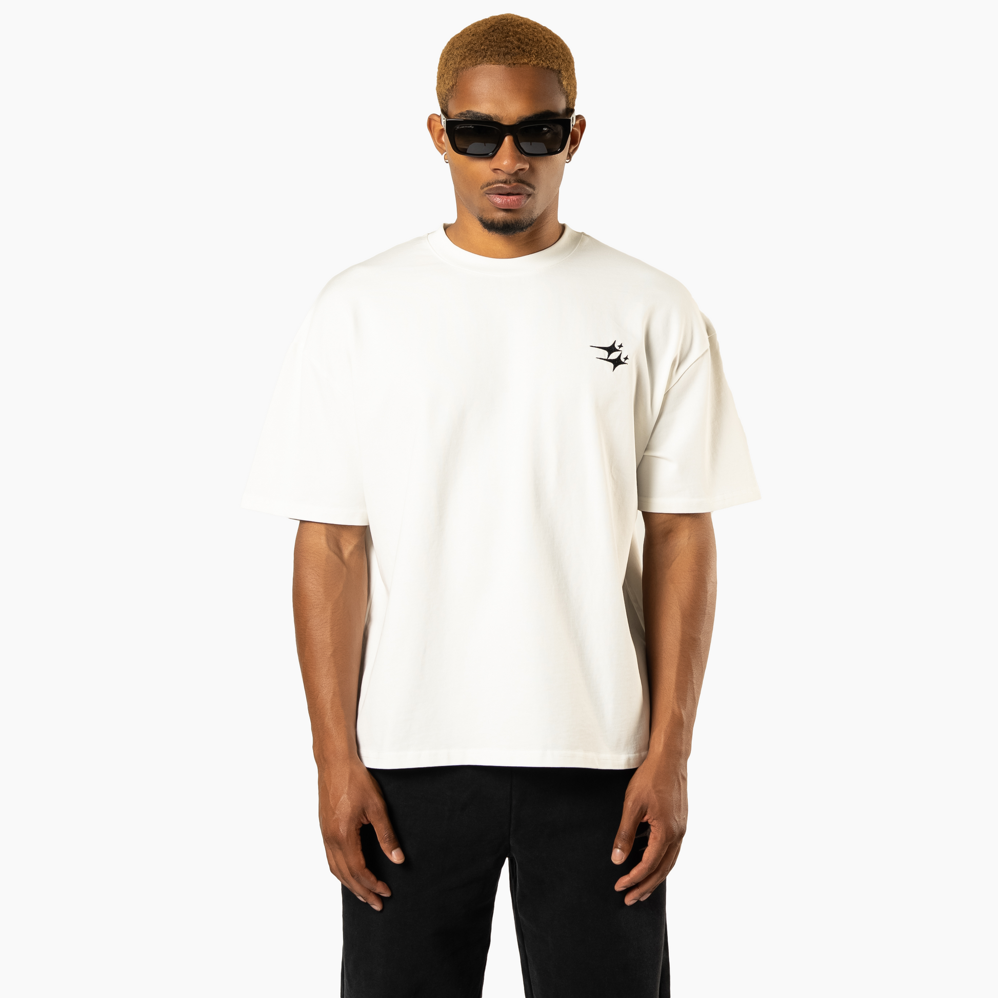 T-shirt blanc en jersey à manches courtes avec une coupe oversize, confectionné en coton épais. Col ras de cou côtelé.